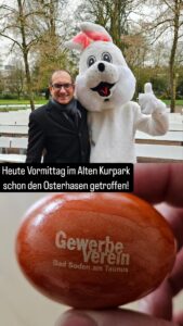 Am 30. März ist der (Gewerbevereins-) Osterhase nach Bad Soden gekommen und sogar das Wetter hat mitgespielt! Er wurde von Bürgermeister Dr. Frank Blasch im